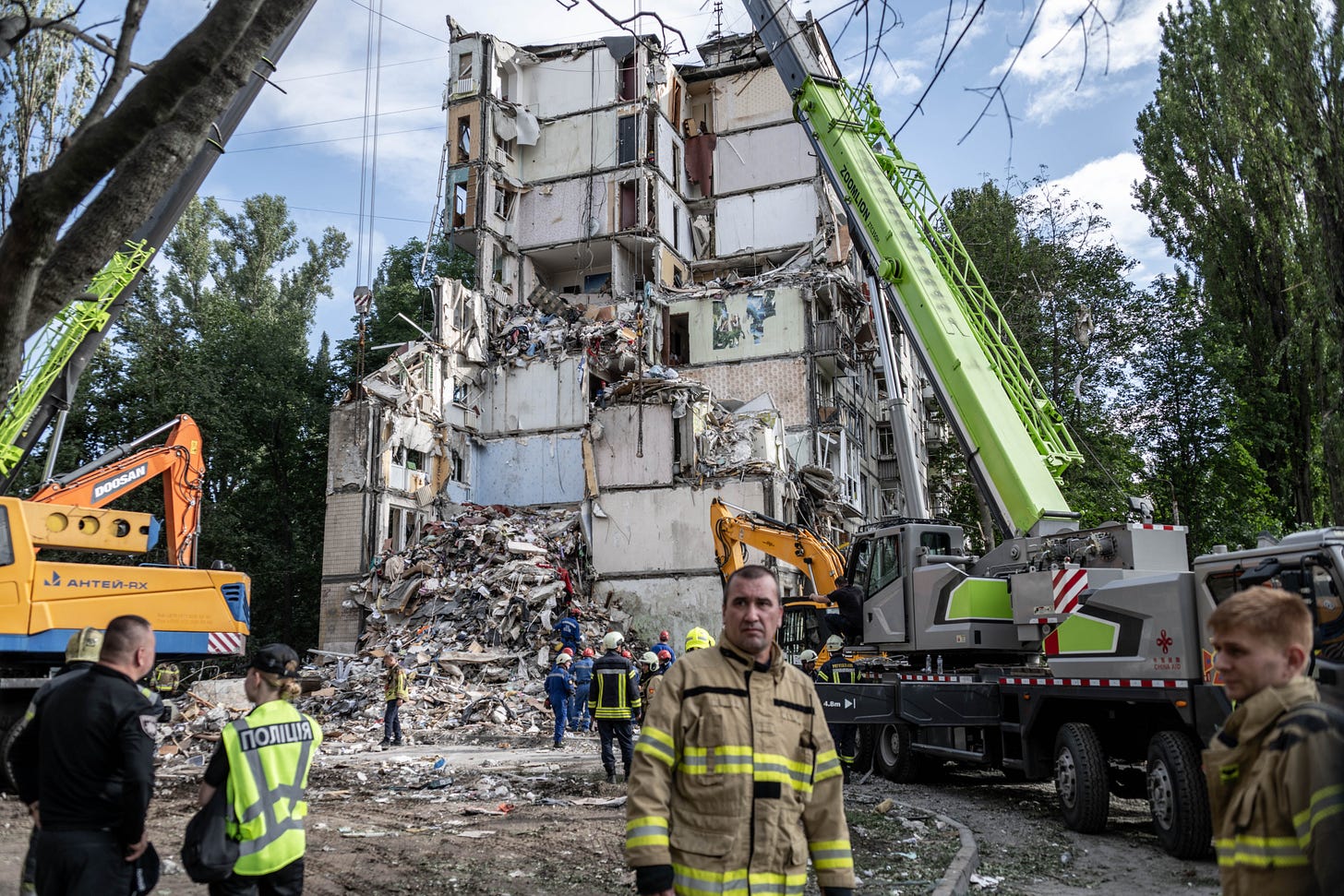 (Kyiv apartment building destroyed in July 31, 2025 attack. Photo by Chris Sampson)